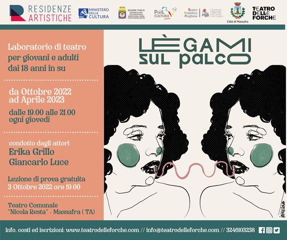 ??? | Dove: il laboratorio si terrà presso il Teatro Comunale Nicola Resta, sito in Piazza Garibaldi a Massafra.