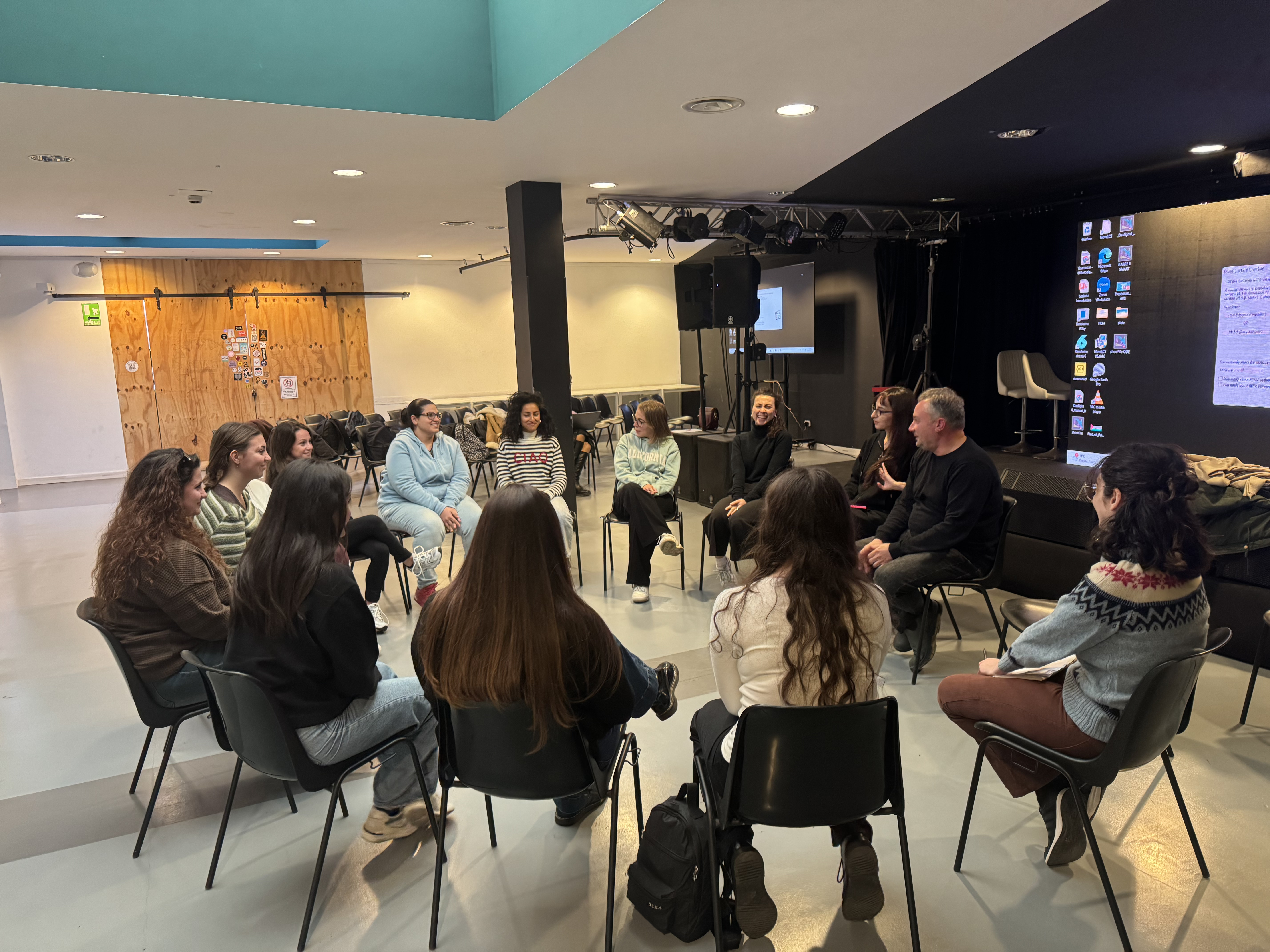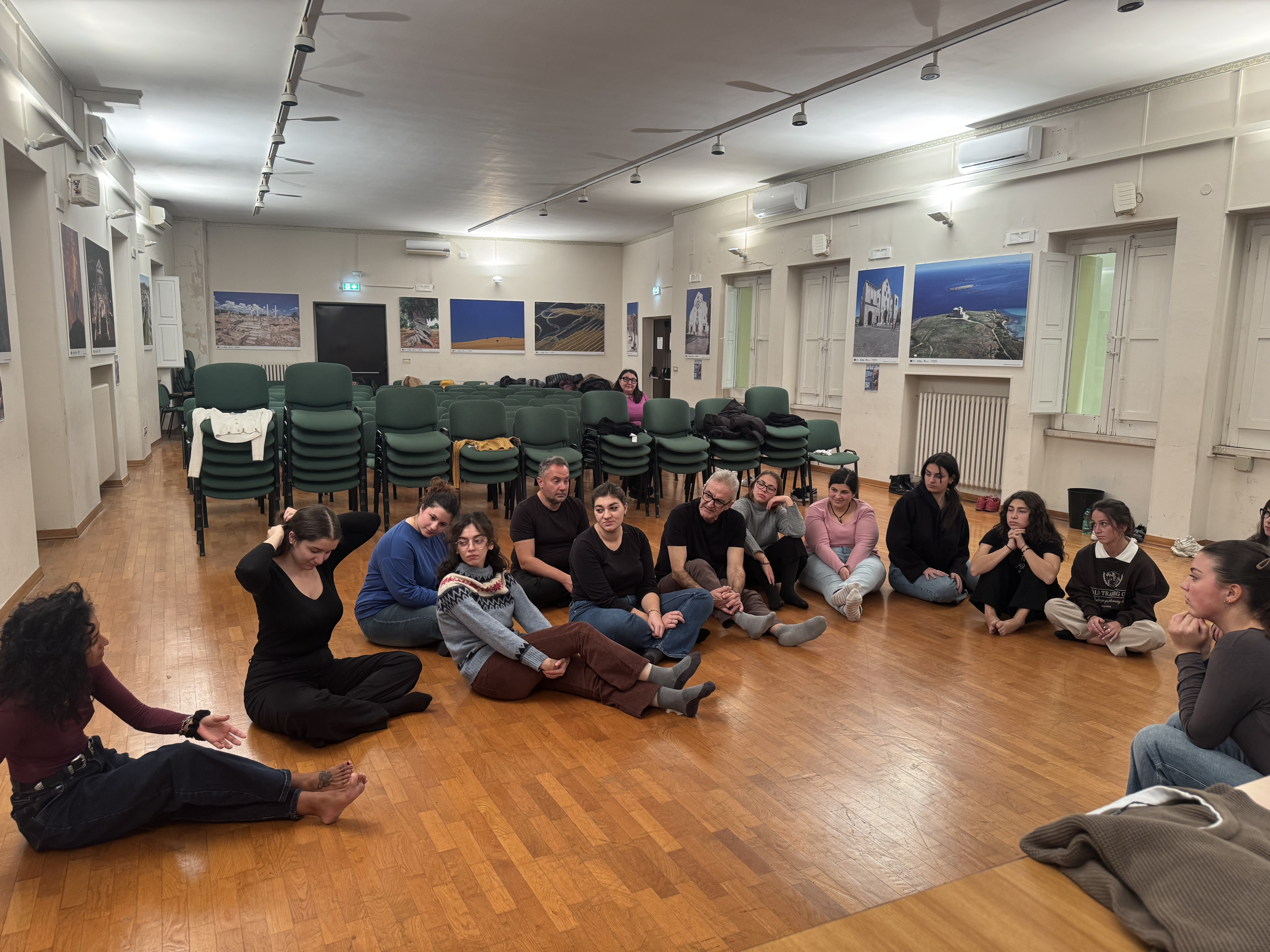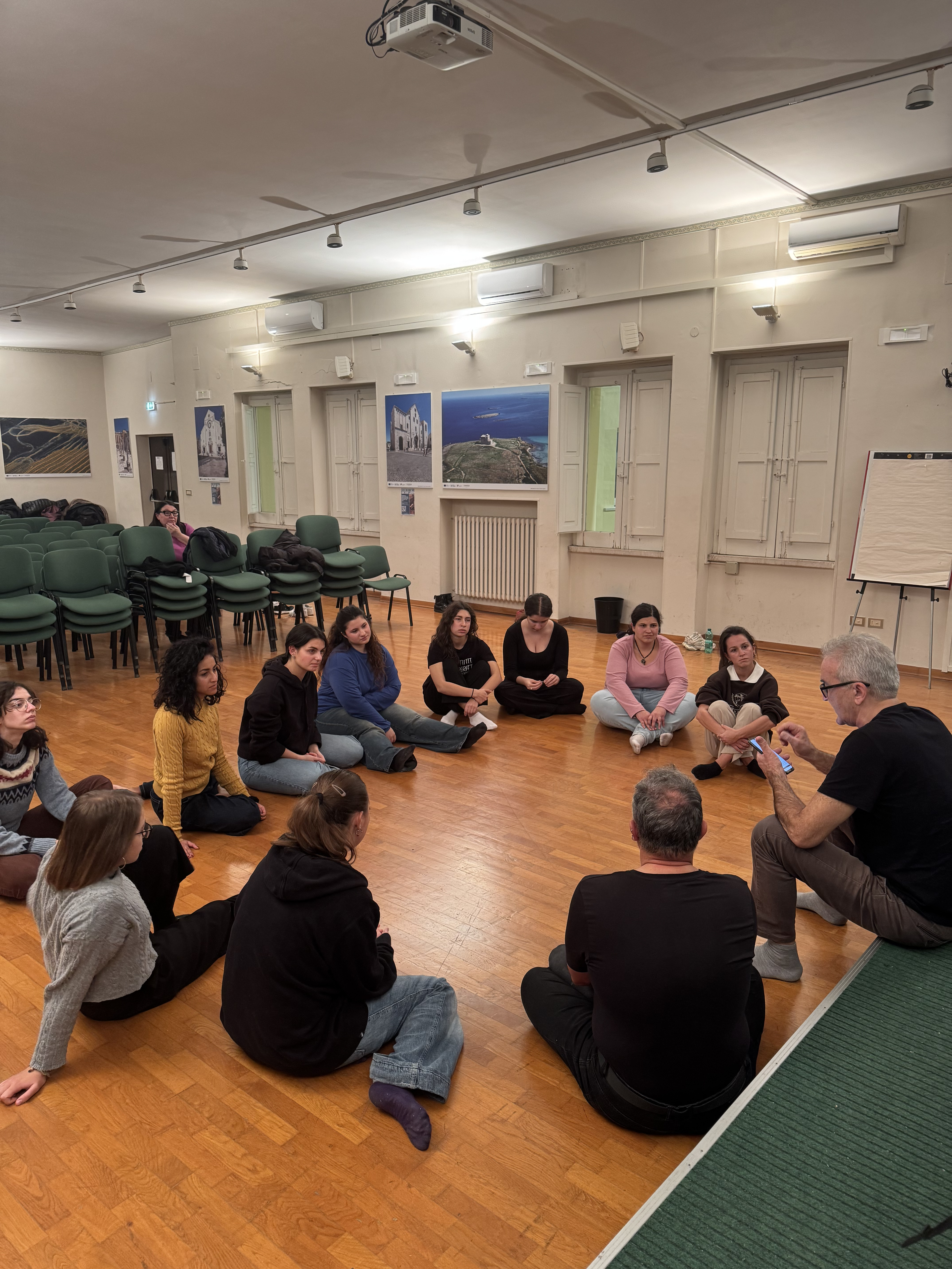 Il laboratorio ha alternato momenti teorici a pratiche di improvvisazione, lavoro sul corpo e sulla voce, sperimentazione di testi e scritture sceniche del maestro Carlo Formigoni.